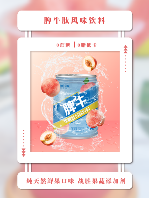 论一款好饮品的重要性,高科技生物成分牛脾肽粉,安全性更高的零热量代糖配方赤藓糖醇,纯天然鲜果白桃浓缩汁,更易于肠胃吸收的益生元低聚果糖,共同打造一款高品质饮品——脾牛.牛脾肽风味饮料。
