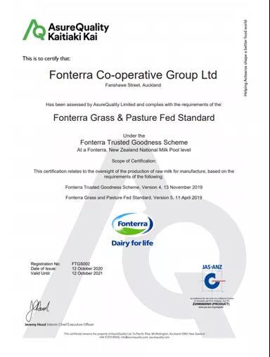 √ 获得新西兰AQ草饲认证