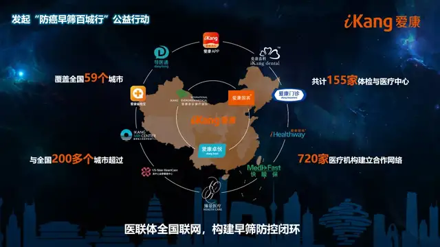并通过爱康旗下150余家体检中心及与全国200多个城市超过720家医疗机构建立的合作网络这一基础资源,构建防癌早筛防控闭环,助力全国癌症早筛早诊早治。
