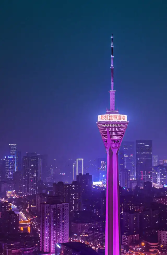 2021年10月成都天府熊猫塔为“粉红丝带运动“点亮