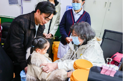 △中南大学湘雅医院新生儿科主任岳少杰在类乌齐县人民医院爱心义诊。