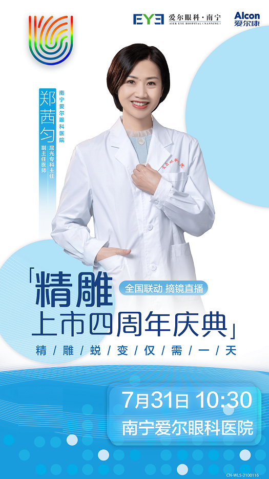 7月31日,爱尔康携手南宁爱尔眼科医院,带来了“精雕上市四周年庆典,精雕蜕变仅需一天——一样的世界不一样的视野,爱尔康全国联动,开启睛彩人生-南宁爱尔眼科医院专场”直播,为广大网友答疑解惑。