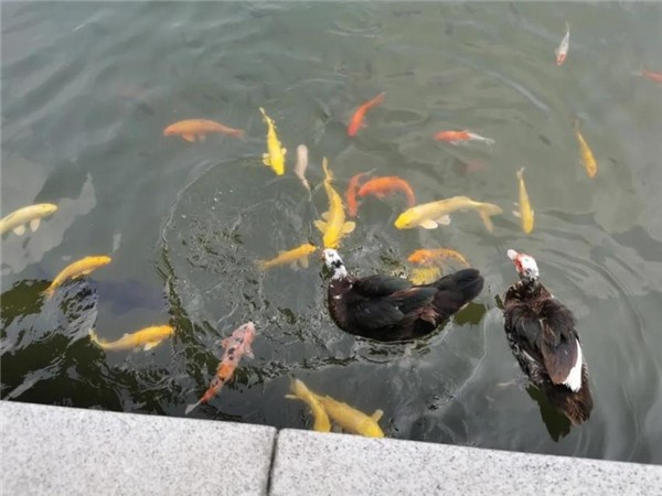 ▲鸭“戏”金鱼