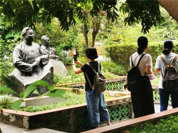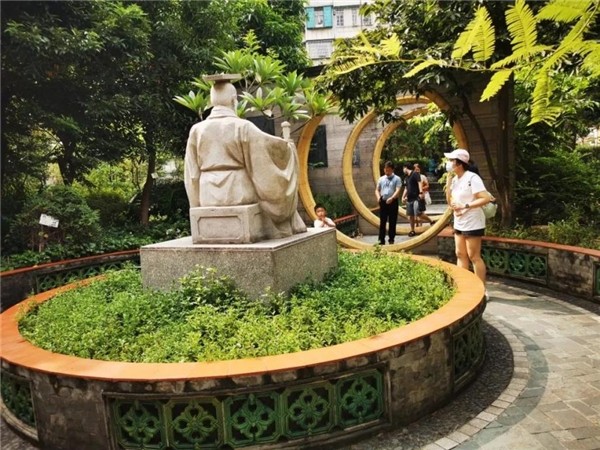 在名医塑像群前,