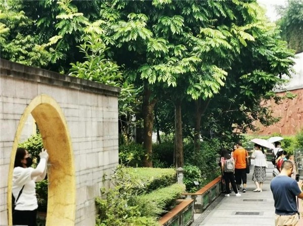 她在月亮门里拍风景,