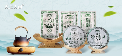 “天上人间”中国茶健康无量系列有357克圆饼、200克巧克力饼、200克砖和100克小饼。