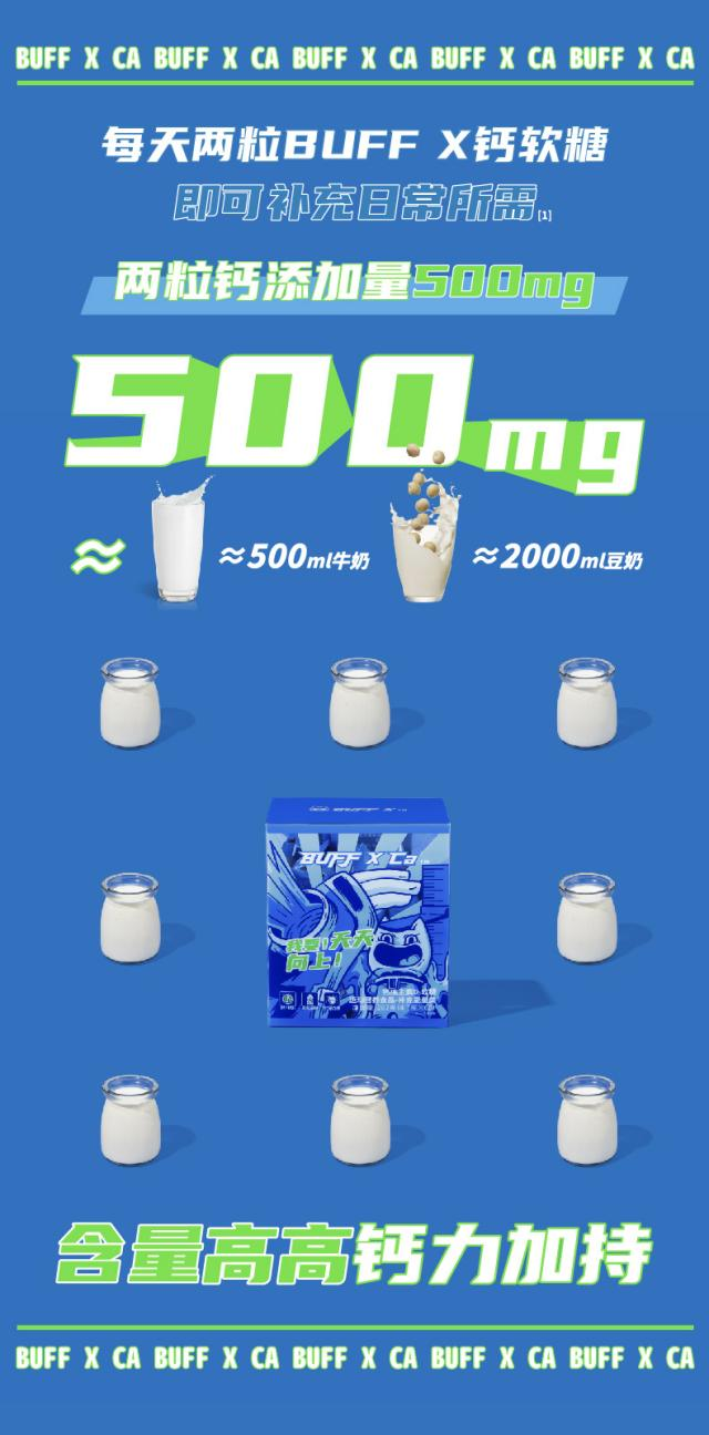 提到补钙,不得不提的是近日由国产功能性食品BUFFX推出的BUFF X Ca钙维生素D3软糖。这款被制成了软糖质地的特殊膳食食品被年轻人称为“补钙小零食”,如今已经在社交媒体上频频刷屏,成为众多补钙人群常备的营养品之一。
