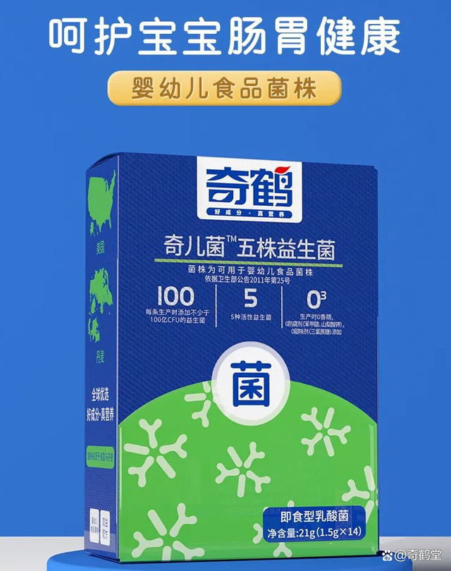 别担心!国产营养品行业中坚力量奇鹤推出的奇儿菌五株益生菌了解一下,甄选5大菌种,协同作战,更好地呵护宝宝肠胃健康,妈妈们再也不用担心了。接下来,我们和小编一起来看看奇儿菌五株益生菌到底有多强大吧?