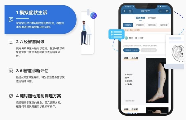 进入21世纪以后,互联网科技、5G通讯科技、物联网、航空航天、生物科技、人工智能等高科技领域的创新层出不穷,现代医学在人工智能的加持下,已经开拓发展出很多应用,甚至演进出电子治疗“药物”,直接使用智能行为校正来帮用户改善健康状况,“吉时智疗”作为直接面向消费者的中医人工智能产品,应运而生,直接为用户个性化定制非药物疗法,辅助用户对身体常见问题进行针对性的调理。