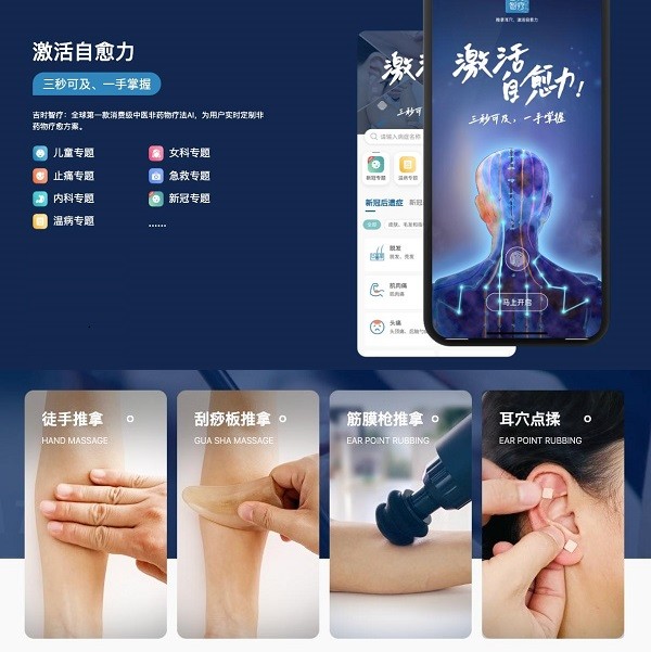 这是一款以高水平医学内核为驱动的人工智能产品,模拟清朝乾隆御医黄元御的经典医学思维,建立了古典医学的知识图谱,基于黄元御医学的诊断、配方的逻辑系统,通过四诊之一的问诊,对用户进行系统症状采集,实现智能诊断、优化配方,给每个用户生成适合当时使用的实时配方,目前支持极简的经络推拿、耳穴点揉两种非药物疗法,帮助用户对疼痛、儿科、妇科及一些家庭常见疾病,进行单独或联合调理,加速康复。这一款智能产品的出现,填补了非药物疗法智能体的空白,将国外同类产品甩出了许多条街。(目前国外类似产品的非药物疗法仅支持某些特定的疼痛的调节,且基于现代医学,吉时智疗则支持家庭常见300多种常见病症,并完全基于古典中医学,属于纯正的中国文化产品)。