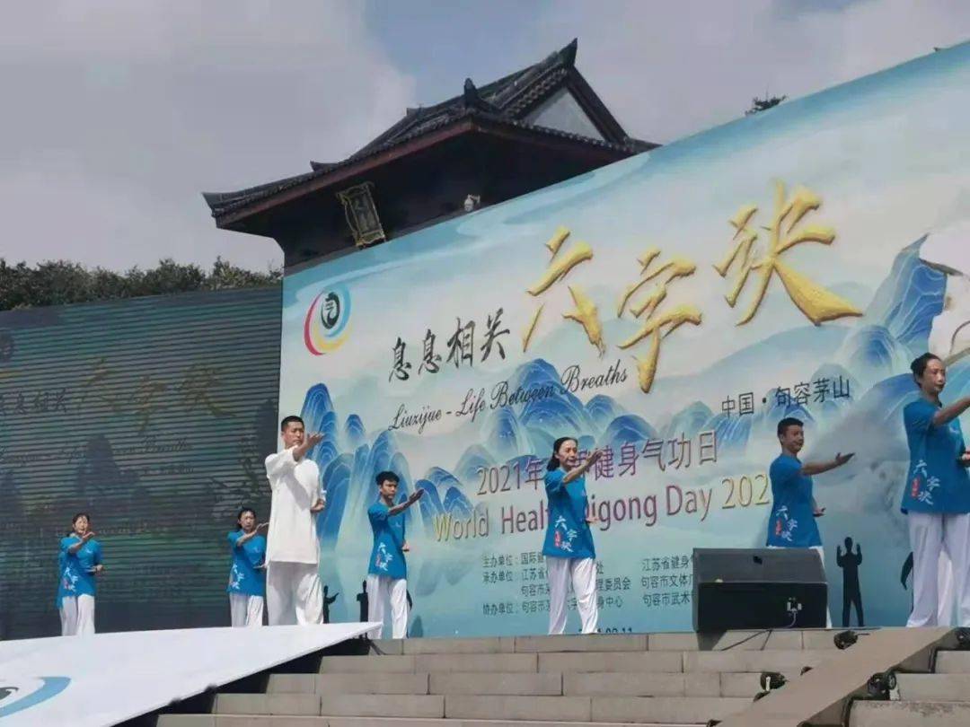 上午10时,来自江苏省健身气功协会的150多名爱好者在文化名山茅山展演健身气功·六字诀,整个场面动作整齐划一,呼吸深长匀细,心神恬淡宁静,气韵生动活泼。随后,健身气功专家张明亮以“道不远人”为题,深入浅出地介绍了健身气功·六字诀的历史源流、功法特点、习练要领和功理作用,并指出练功锻炼要与日常生活相结合,能起到事半功倍的健身效果。晚上19时,江苏省句容市的健身气功爱好者,将与世界各地的爱好者一起参加首个“全球同练六字诀”活动,并通过网络直播方式现场与全球参与者共同聆听专家讲座。