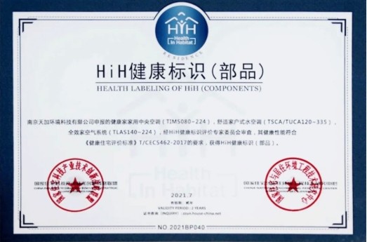 图:天加荣获“HiH健康标识”认证