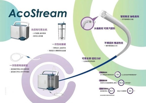 基于这一痛点,先瑞达成功开发外周血栓抽吸系统。外周血栓抽吸系统在保持灵活性、扭控性、支撑力、抗负压及多规格等方面均超越国际水平。同时,该系统规避了临床常用血栓清除器械存在的两大问题:1)溶血现象明显;2)操作中有切断导丝的情况。AcoStream使抽吸效果更好,副作用更少。AcoStream抽吸导管是由多节段结构设计、特殊的金属编织工艺制造,配合抽吸泵真正的实现了“ASAP”达到“Double A效果”。Aspirate Smoothly, Aspirate Powerfully, Aspirate Accurately.