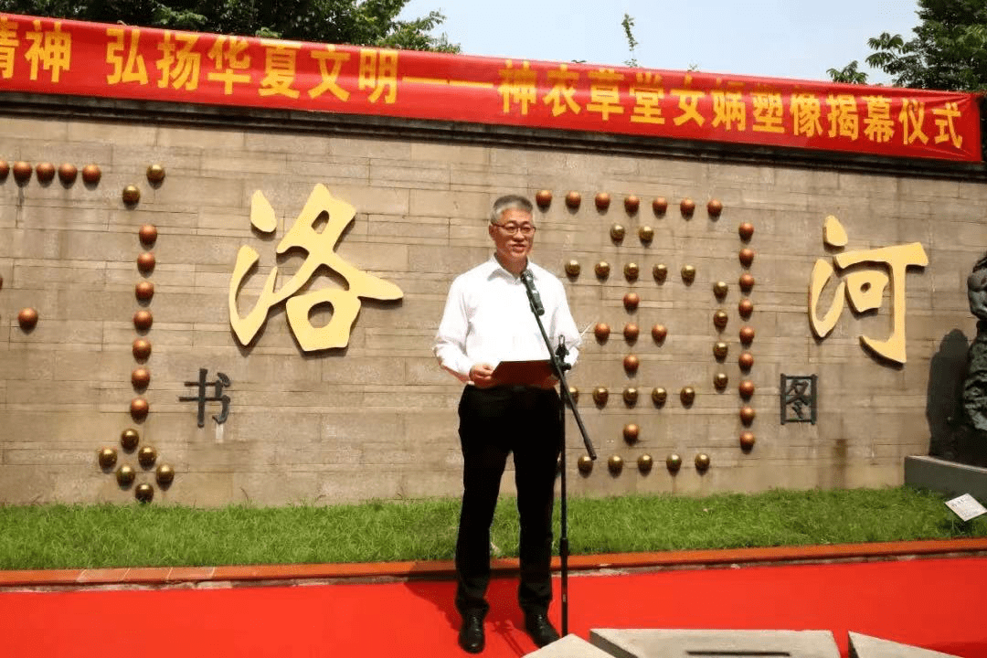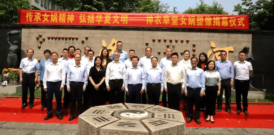 女娲创世,始有华夏;以史强基,以文塑魂。今年立夏,女娲像揭幕仪式在白云山和黄神农草堂河图洛书墙前举行,以传承女娲文化、弘扬华夏文明。中山大学哲学系教授、文化研究所所长李宗桂,广药集团党委书记、董事长李楚源,党委副书记、副董事长、总经理杨军,副总经理张春波,工会主席李锦云及相关部室和司属企业领导参加揭幕仪式,共同见证女娲像落成的庄严一刻。揭幕仪式由广药集团大南药板块副总监、白云山和黄总经理徐科一主持,李宗桂教授、杨军总经理在揭幕仪式上致辞。
