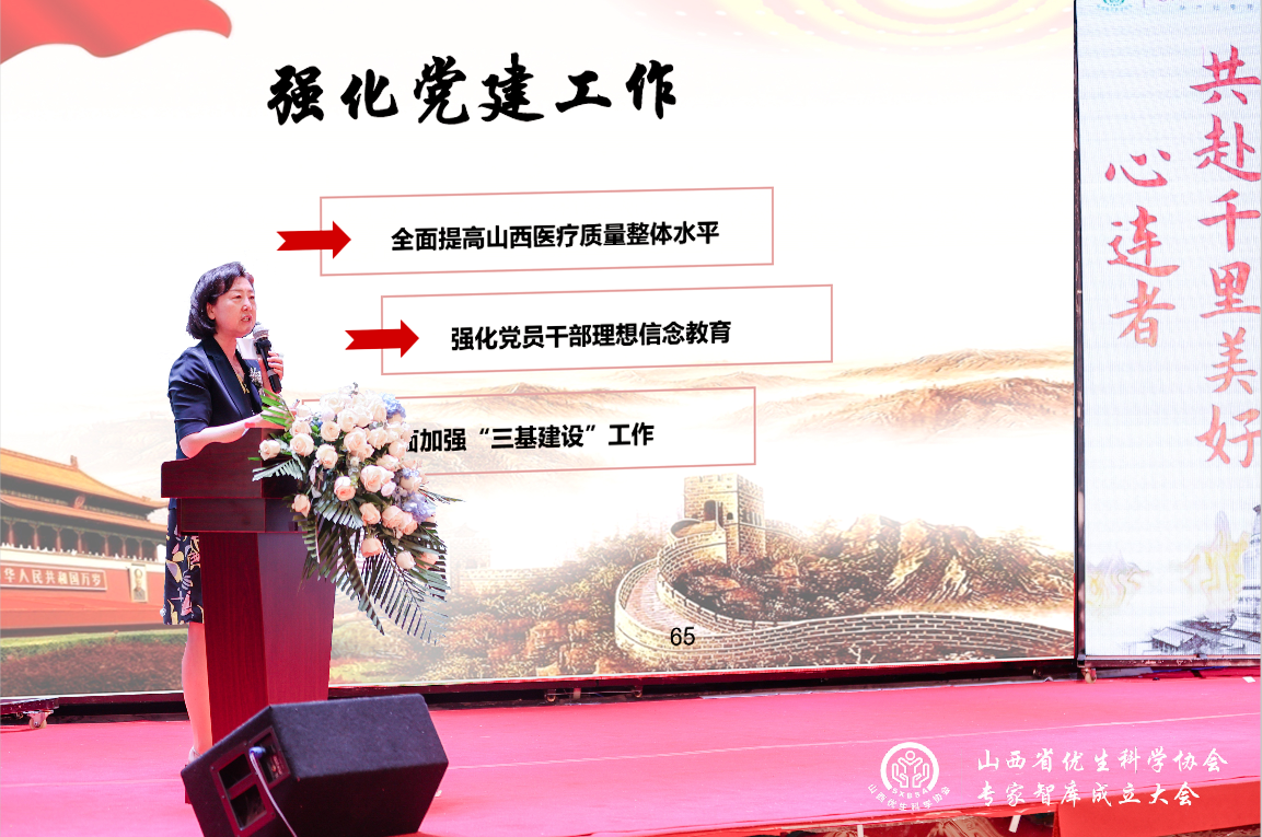 山西妇女儿童基金会理事长王永平发表讲话,对山西省优生科学协会专家智库的成立表达了衷心祝贺。同时,她强调社会各界要携起手来积极开展公益行动和健康科普活动,促进妇女儿童健康,推动健康山西建设。