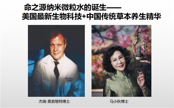 深圳天成铭道科技投资公司董事长马小秋博士大胆预测, 在疫情过后的 2021 年,纯净、低糖、低热量、有一定高科技含量、能提供高利用度营养的“真水”,是定好的投资产品。这款瓶装水,既有中国的传统喜好,又有西方的生物科技,更有中西方的全球市场。她独具慧眼地找到了美国著名科学家、纳米微粒营养球 NNS 的发明人杰瑞·桑索维特博士!