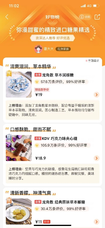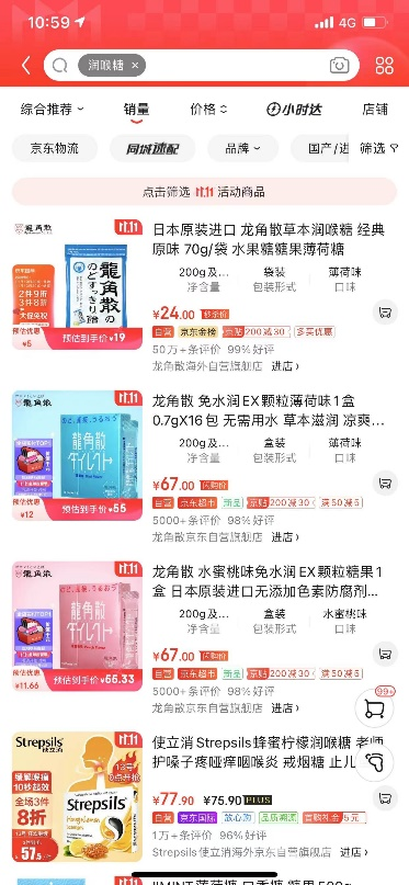 “老爸爱抽烟,经常嗓子不舒服但自己老是不放在心上。趁着双十一给他买了一箱龙角散,希望他能舒服一些”,在龙角散旗舰店的用户评价里,有一位消费者写道。