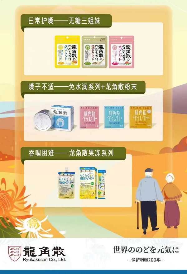 作为日本“汉方”医药的集大成者,龙角散深耕咽喉健康领域200多年。针对不同的咽喉症状,开发了包括咽喉药、润喉片、润喉糖、辅助服药用的吞咽辅助果冻等多款咽喉护理产品。凭借天然草本配方和出色护嗓效果,深受老师、歌手、主播等高频用嗓群体的欢迎。在今年“双十一”期间,龙角散受到了年轻群体的广泛关注,多款护嗓产品登顶各类润喉糖销量与口碑榜单。