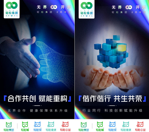 9月19日,3000万家庭信赖的健康保障科技平台——轻松集团迎来8岁生日。值此8周年庆典之际,轻松集团以“无界开元”为主题,携手中华慈善总会、中国青少年发展基金会、中国老龄事业发展基金会、健康中国公益行组委会、锐翌生物、朗迪集团、众惠相互等合作伙伴,发布了8大重点项目,同时宣布了4大战略升级。不仅如此,轻松集团还将发布银河3.0智能营销服务体系,为企业级用户提供领先的生产力工具。