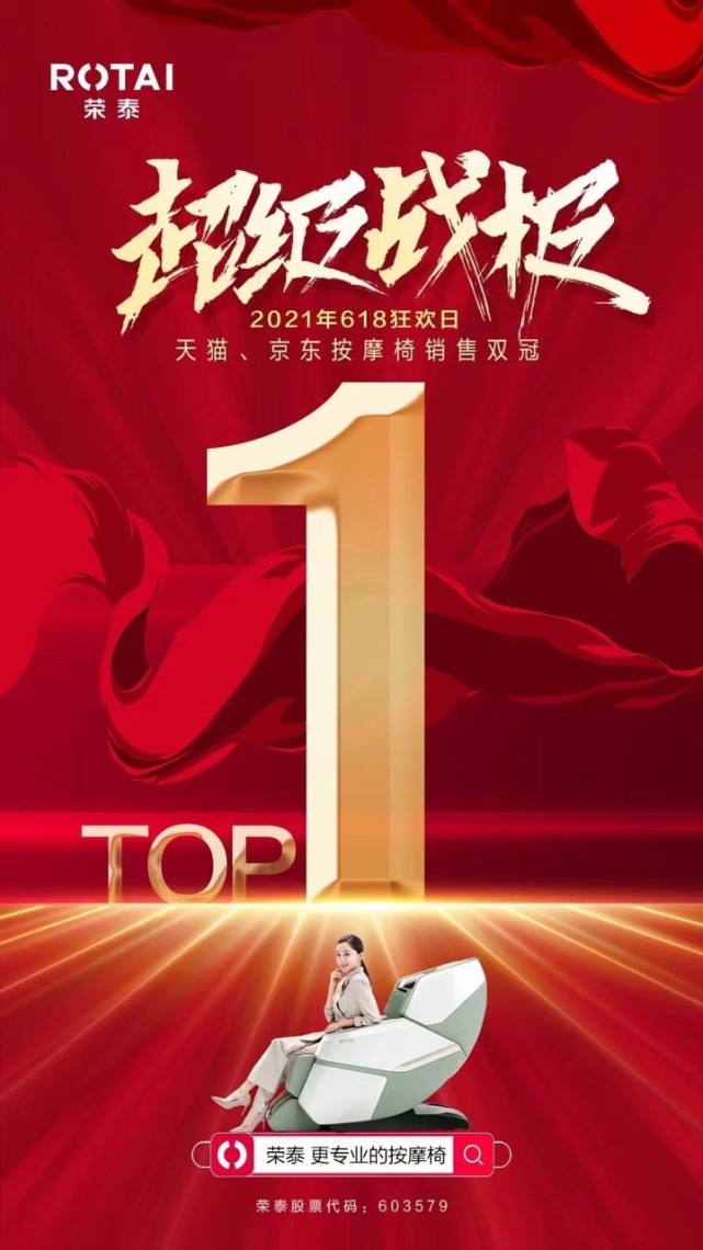 本次618活动期间,健康产品迎来爆发。在健康产品中,按摩椅的表现尤为亮眼。荣泰按摩椅在此次618的行业内表现中,在天猫以及京东自营渠道的销售额均拔得头筹。值得一提的是,今年荣泰按摩椅全球总出货量已突破二百万台,在按摩椅市场名列前茅。