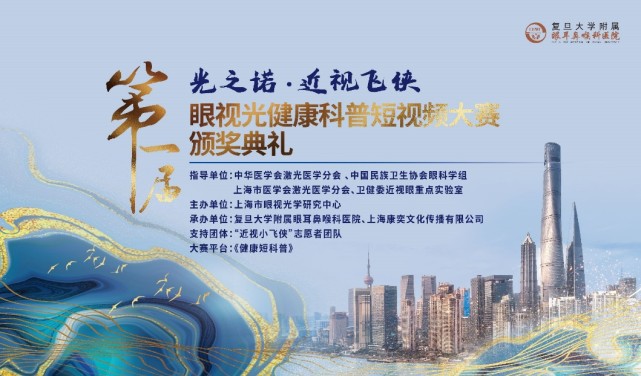 8月1日,2021年上海眼视光健康科普短视频大赛颁奖典礼在复旦大学附属眼耳鼻喉科医院会议中心成功举办。该大赛由上海市眼视光学研究中心主办,复旦大学附属眼耳鼻喉科医院及上海康奕文化传播有限公司承办,历时六个月,参与人次近百人,累计作品上百个,预计覆盖人群达30万,获得了大众的热烈关注和分享转发。
