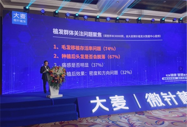 记者现场采访参会的发友了解到,发友最关注的问题是植发技术是否成熟、植发后的头发会不会再次脱落、植发手术的成活率……其中,毛囊成活率的问题不仅牵动着每一位在场嘉宾的心,更是大多数发友最关心的问题。发布会现场,大麦微针植发医院总院长李兴东,展现了由大麦微针植发大数据中心提供的调研结果,并进一步阐释本次与南方医院科研合作的初衷是解决植发顾客实际痛点。