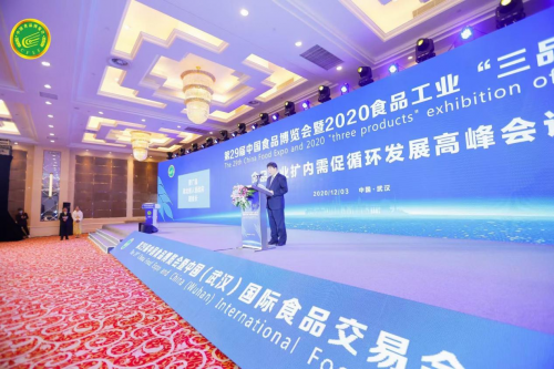 2020年12月3日,第29届中国食品博览会暨中国(武汉)国际食品交易会,同期举办的食品产业振兴发展论坛(全国食品工业“三品”专项行动峰会)在武汉国际博览中心洲际酒店召开,借此充分展示食品工业“十三五”以来在“增品种、提品质、创品牌”方面的典型成果,推广先进经验和典型做法。