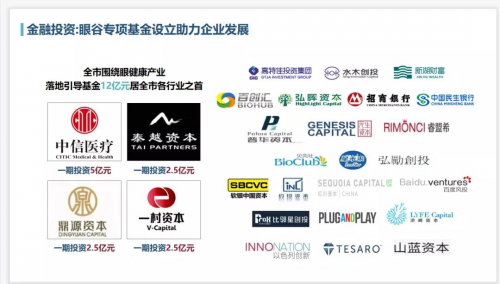中国眼谷计划于2022年之前专项投入2.75亿元,吸纳企业和社会配套资金3亿元,与世界500强企业爱尔康、诺华、强生、依视路、博士伦、艾尔建、目立康集团和国内上市企业、眼科大型企业兴齐眼药、贝瑞基因、爱尔眼科、清大视光等联合打造世界领先水平的眼视光装备、视觉光学、眼用材料、眼科药物和智慧医疗五大科创平台,填补全国眼视光研发体系空白,为支持重大企业发展、高端人才引进,解决眼视光“卡脖子”问题奠定坚实基础。