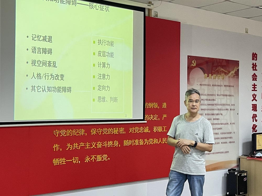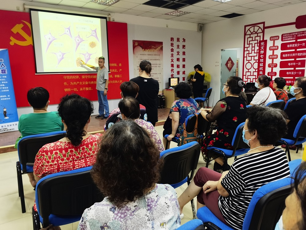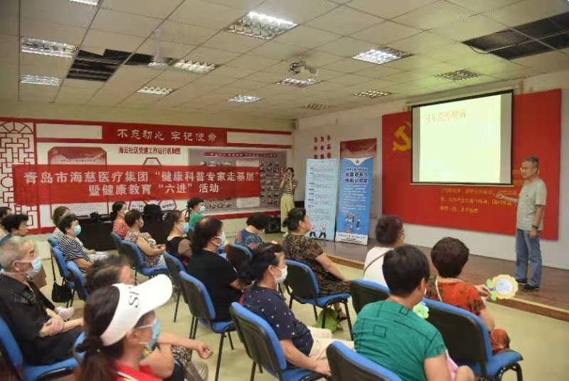 为推进健康中国建设,推行健康文明的生活方式,增强全民健康意识,提高全民健康生活素养,8月9日,由青岛市海慈医疗集团开展的“健康科普专家走基层”暨健康教育“六进”活动走进市北区海云路社区。活动当天,神经内科中心毛德军主任医师为社区的老年人进行了关于预防阿尔茨海默病的健康讲座。