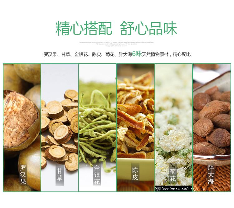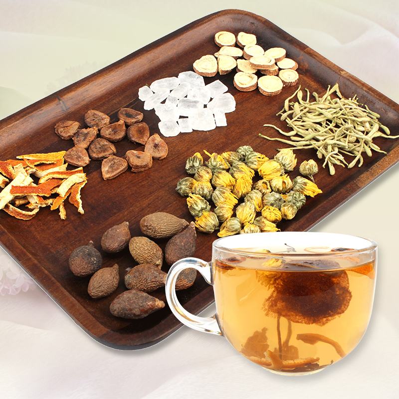 大家可以用以上小编所说的食材,熬制成茶饮或者是制作成茶包,如果嫌麻烦或者是不方便的话,小编在这里给您推荐这一款茶包——胖大海罗汉果金银花陈皮菊花大麦甘草茶,这一款茶包含有以上所说的小袋包装,需要喝的话拿出一包冲泡几分钟就可以饮用了。