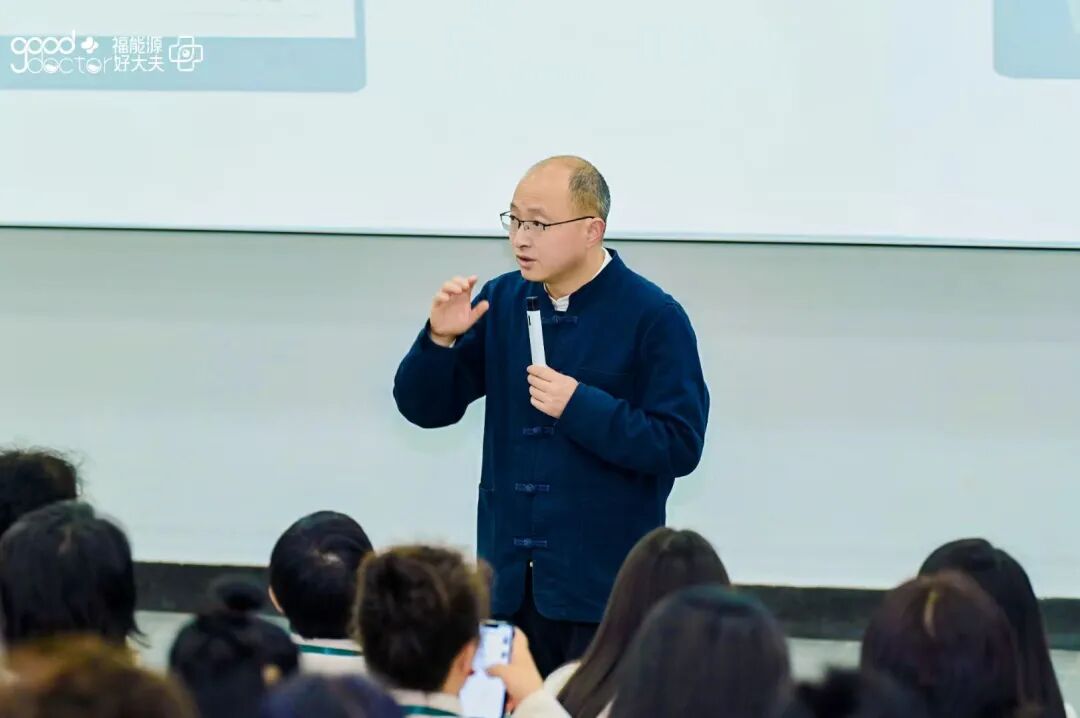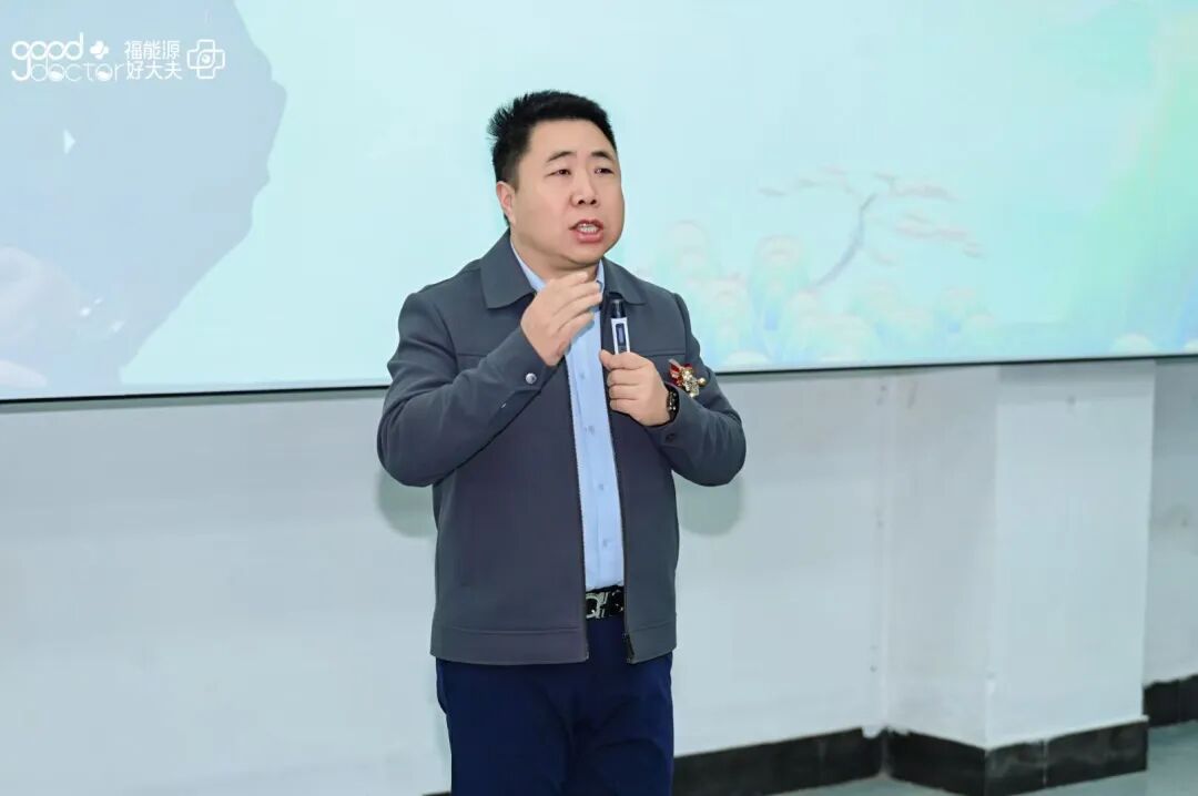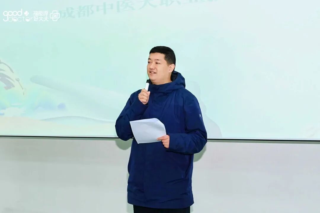 成都中医药大学继续教育学院、职业技能培训中心林橙主任致词。林橙主任首先代表学校向参加此次培训的学员表示热烈欢迎,同时并感谢福能源好大夫长期秉持关爱大众健康的理念,为健康从业者搭建了宝贵的学习平台。随后,他介绍了成都中医药大学深厚的办学底蕴、强劲的学科实力以及优质的培训资源;他表示,本次培训将通过系统课程与实战教学,帮助学员夯实中医理论基础、提升实操技能,助力基层中医药服务能力提升。最后,他预祝本次培训班圆满成功,祝愿学员学有所获、学有所成。并期待未来校企双方持续深化合作,携手讲好新时代的中医药故事。